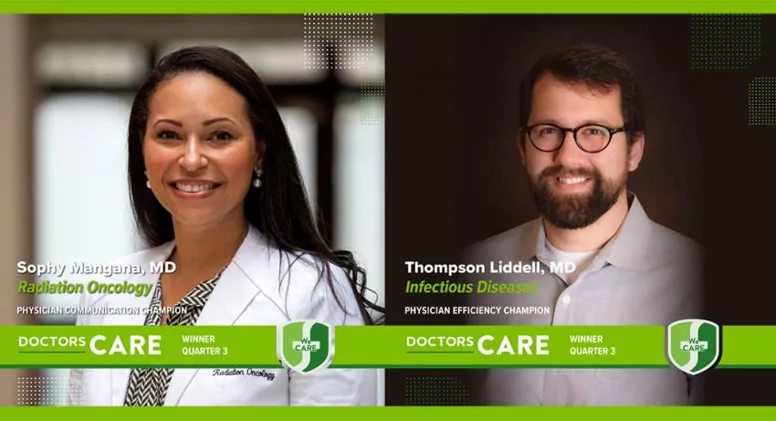 Sophy Mangana, MD, Radiation Oncology, and Thompson Liddell, MD, Infectious Diseases, were recognized as third quarter 2023 winners of the Forrest General Hospital Doctors CARE Awards. These awards recognize the achievements of physician members of Forrest General Hospital in service and contribution to the patient and physician community.