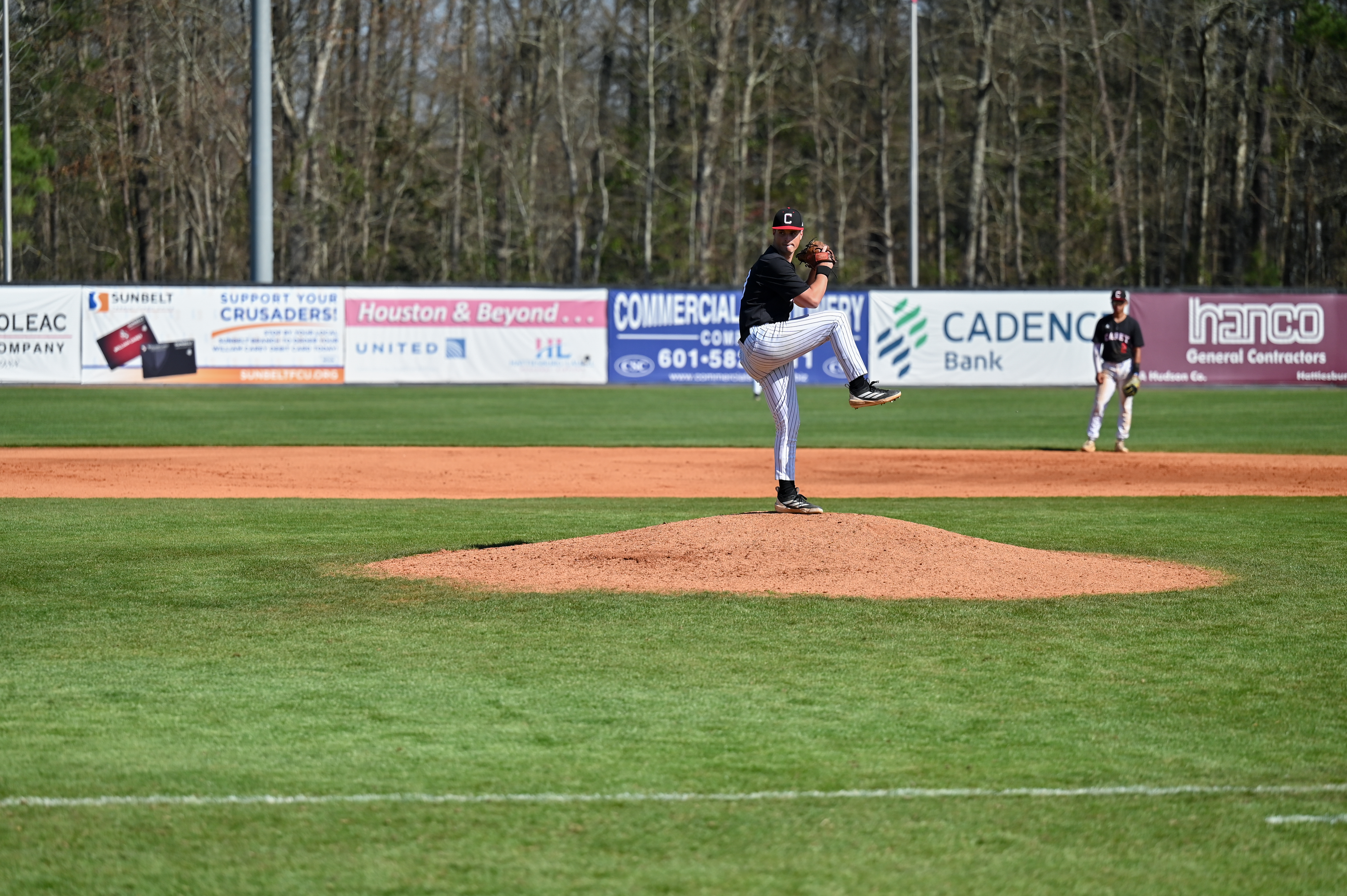 LSUA capitalized on two Crusader defensive miscues in the top of the first inning to jump out to an early lead. Trevor Dooley reached base on a throwing error before Dalton Wilson followed with a single. Lane Kratzer then reached on a second error, allowing Dooley to score an unearned run and give the Generals a 1–0 advantage.