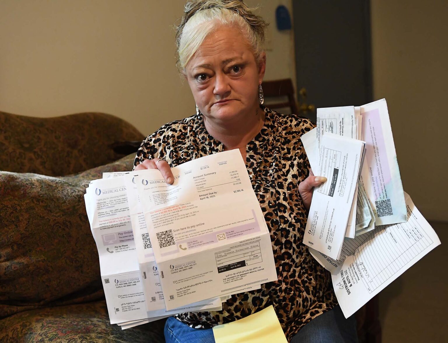 Photographs of Cheryl Baier of Forest, before and after she was savagely beaten by her then boyfriend, Tuesday, Aug. 5, 2025. Credit: Vickie D. King/Mississippi Today
