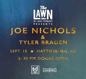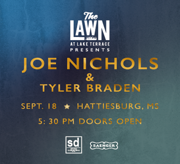 The Lawn at Lake Terrace recently announced that country music mainstay, Joe Nichols, and one of country music’s promising new artists, Tyler Braden will perform at its outdoor venue on Saturday, September 18.