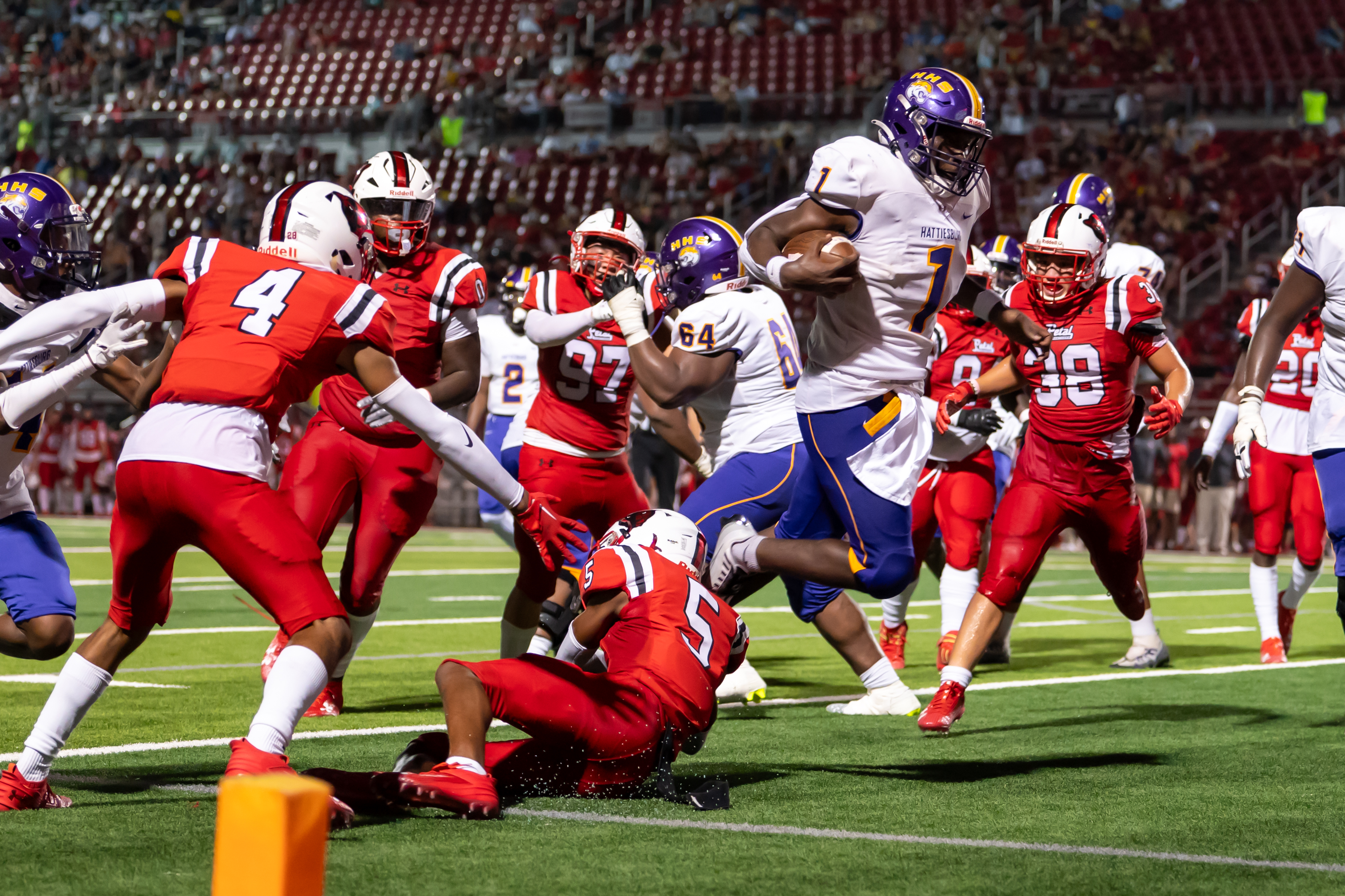 Petal was led by a 3-touchdown performance from Cory Jackson while quarterback Dylan Causey threw for over 200 yards and two scores. Hattiesburg running back Tavares Wade accounted for 90 yards and a touchdown on 17 carries while wide receiver Tristen Keys had four catches for 153 yards and a touchdown. The Tigers travel to play Laurel, which lost to West Jones 24-16. Petal will also be on the road to face St. Martin, which opened the season with a 42-7 loss to Vancleave.