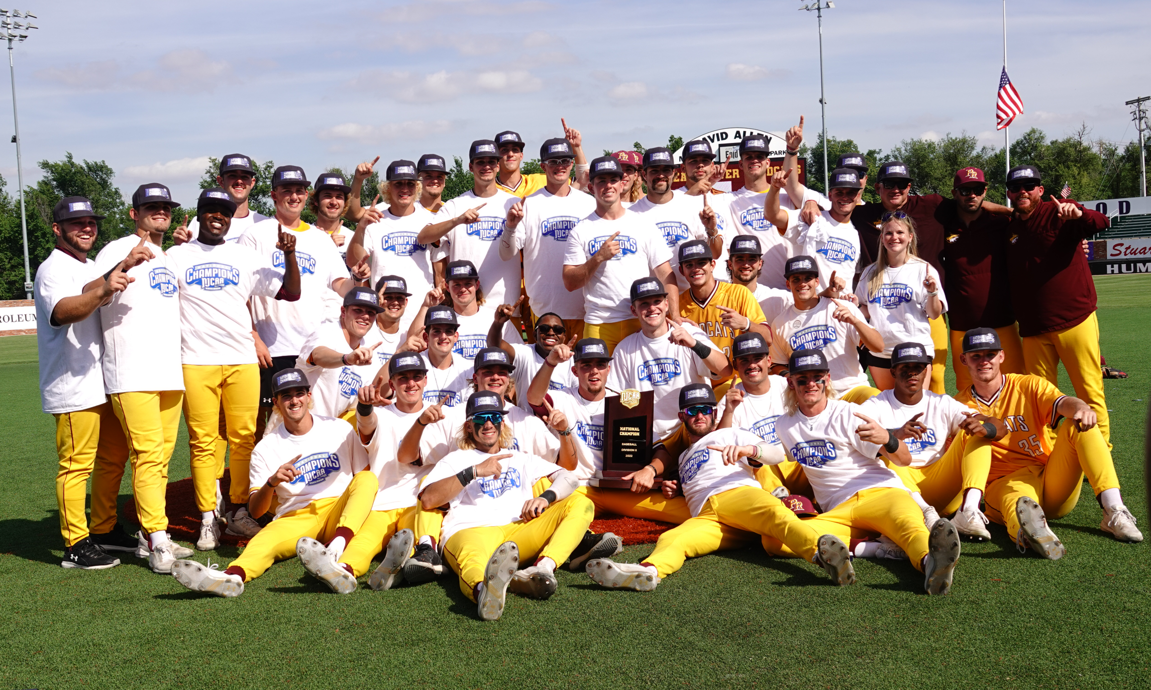 ENID, Okla. — It would've been easy for the No. 1 Pearl River Community College baseball team to fold after falling in the first game of the Championship Series, but the Wildcats never lost faith. They turned in an emphatic response in game two, winning 19-1 to force a decisive game three. Dressed in the all gold uniforms, Pearl River took the field one last time Saturday and turned in a come from behind 7-2 victory over No. 2 Madison to win the program's first National Championship.