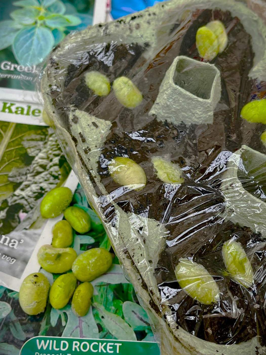 For seeds to sprout quickly takes warmth, moisture, and humidity. This can be done in any container with drainage holes, filled with seed starting mix, and covered to conserve warmth and humidity. Egg cartons and deep-dish plastic food containers swathed in kitchen food wrap will do fine. By the way, I often pre-sprout expensive seeds, placing them on a damp piece of paper towel in a plastic bag, which often cuts germination to just days.