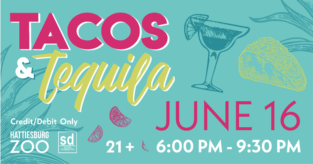 Tacos & Tequila is sponsored by Stokes Distributing, and is a 21+ event. Only Credit and Debit cards are accepted for any purchases in the Hattiesburg Zoo for this event.