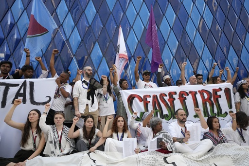 Babawale Obayanju, an activist with the Global Campaign to Demand Climate Justice from Benin City, Nigeria, taking part in Sunday’s protests, told the AP that it was important to highlight the killing of civilians in the Gaza Strip as “it’s time for the world to take action” on that and the environment.