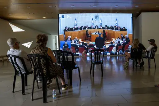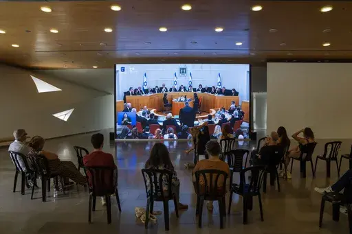 The hearing puts Israel’s Supreme Court in the unprecedented position of deciding whether to accept limits on its own powers. In a sign of the case’s significance, all 15 justices are hearing the appeal together for the first time in the country’s history, rather than the typical smaller panels. The proceedings were also livestreamed and aired on the country's main TV stations.