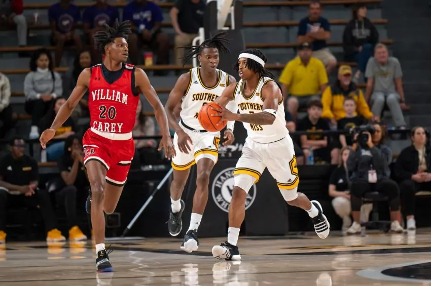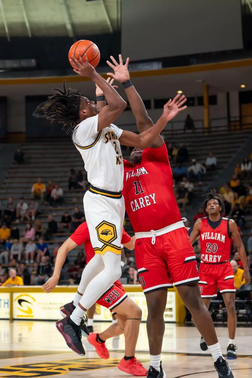 The only difference was cultivating patience and energy into Southern Miss’ second-half performance that led the Golden Eagles to a 64-42 win against crosstown foe William Carey to open the season.