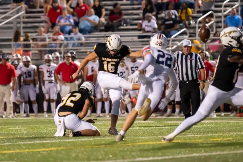 However, in Oak Grove's first possession, penalties hurt the Warriors at getting any rhythm going. Quarterback AJ Maddox led his team down the field in 14 plays, but MRA held Oak Grove to a field goal in one of the few stops of the night for each defense. Luke Stewart nailed a 20-yard field goal, which put Oak Grove on the board at 7-3.