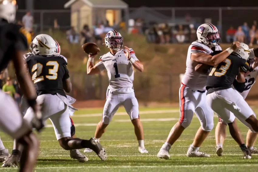 The first drive of the game set the tone for the night, with MRA quarterback John White finding Case Thomas for a 69-yard touchdown pass to open the game. From there, both team's offenses did not stop.