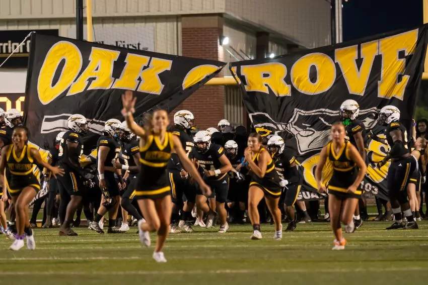 Oak Grove’s scoring frenzy continued in the second quarter with running back Kylin Champagne scoring on a 5-yard touchdown run and then PJ Woodland scoring on a pick-six before halftime.