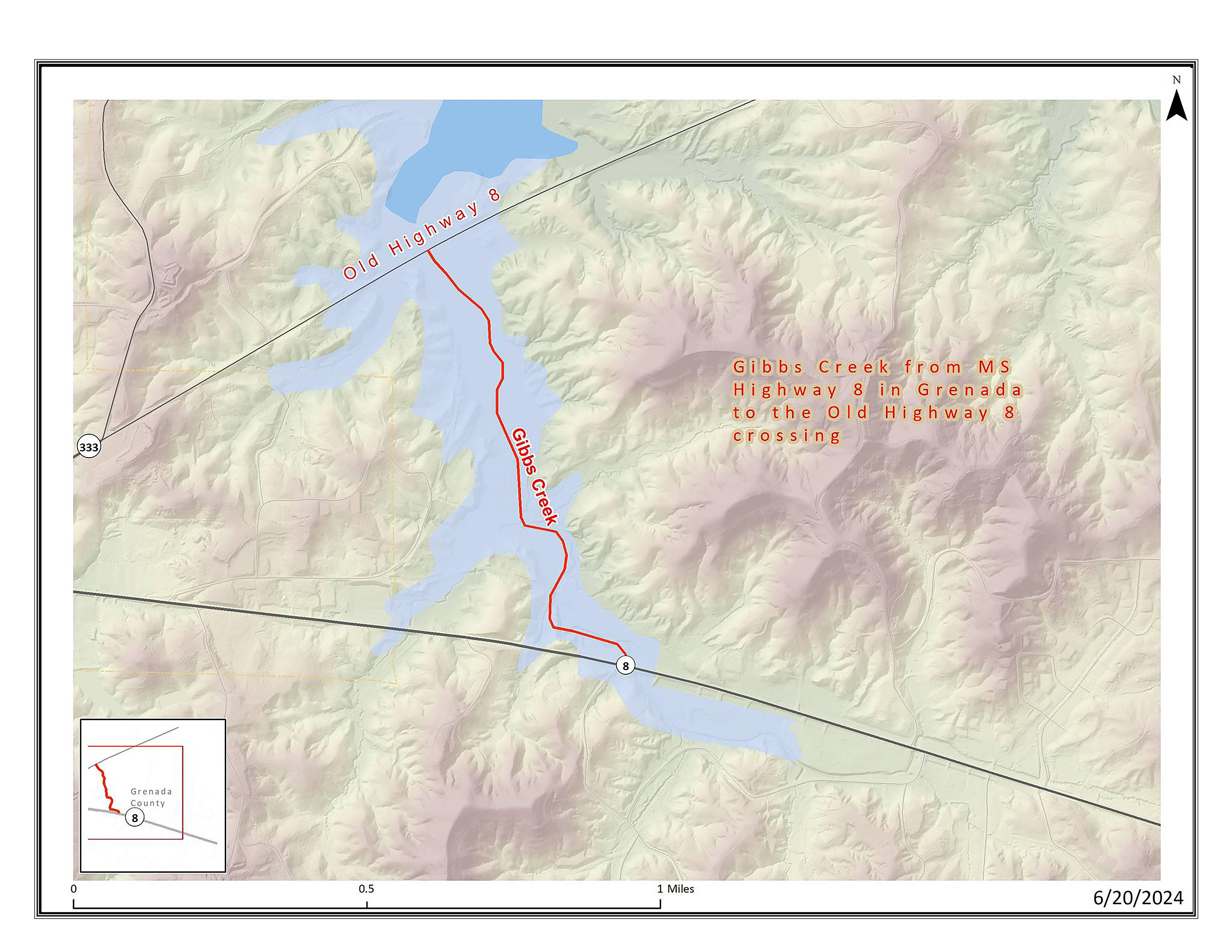 The advisory covers a section of Gibbs Creek from Mississippi Highway 8 to where it meets with Grenada Lake and its crossing with Old Mississippi Highway 8 (see attached map). Grenada Lake itself is not included in this advisory.