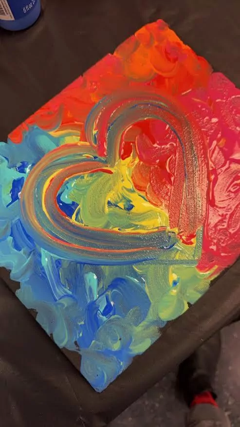In connection with the holiday, participants painted a black canvas with colors such as red, pink, orange, yellow, blue and turquoise. Each student was encouraged to blend the colors together to create a study of the “warm and cool” concept, and the finished products included brush strokes in the shape of a heart.