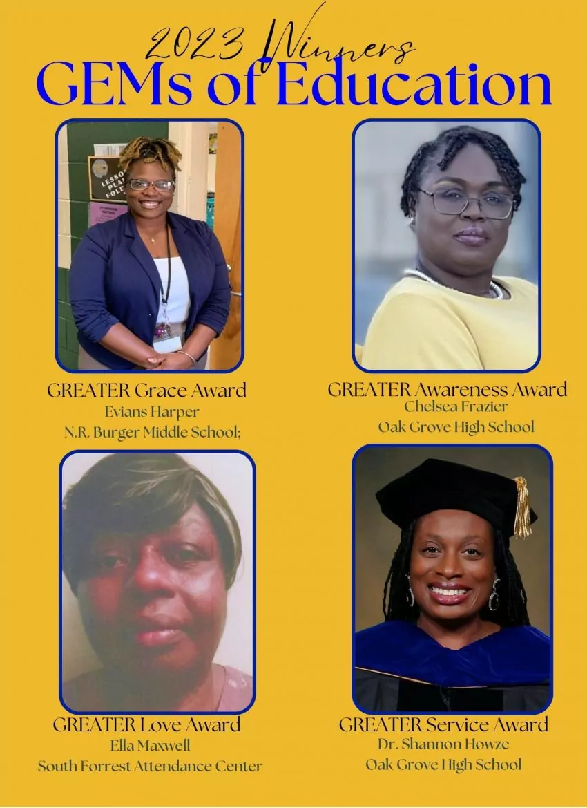 The first was to recognize teachers from area school districts – Hattiesburg, Lamar County, Petal, Forrest County, Pike County and Jones County – for their excellence in education, instruction and leadership. To that end, four “Gems of Education” awards were presented: Greater Awareness, Greater Grace, Greater Service and Greater Love.