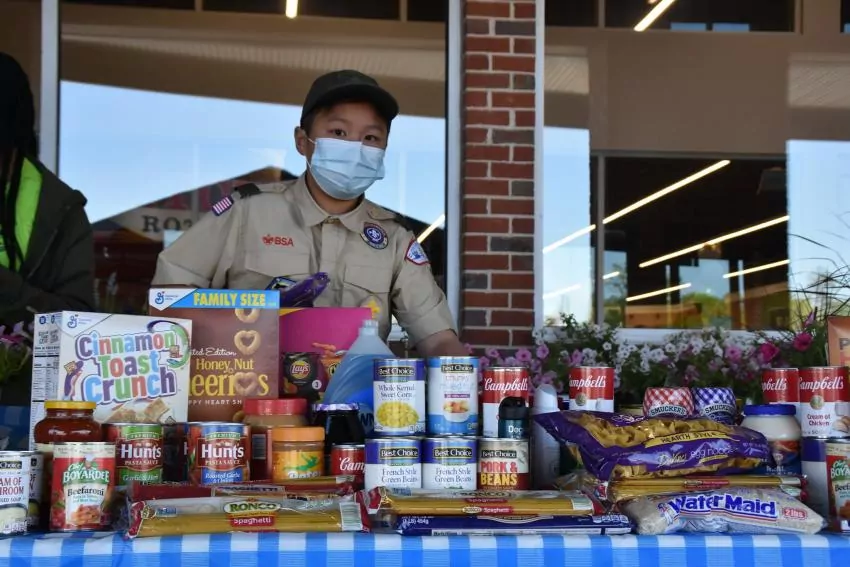 During the event, patrons of the five stores were able to purchase select items, such as canned, nonperishable fruit, soup and vegetables, and drop them off with the scouts upon leaving. Other items included foodstuffs like oatmeal, pasta, dry beans, peanut butter and powdered milk.