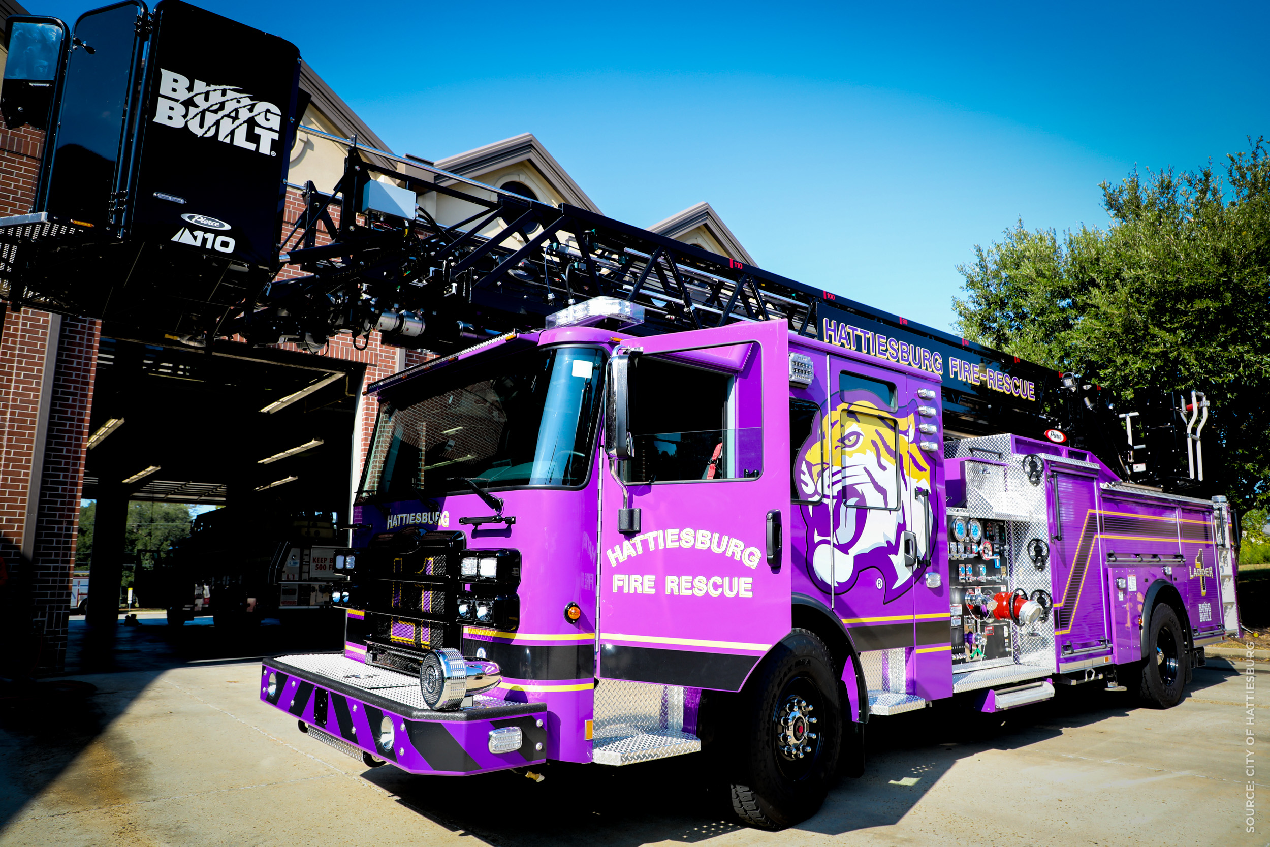 “We saw this as another opportunity to promote Hattiesburg High and the entire school district, so we decided on a purple truck with the Tiger logo,” Barker said. “After Big Red at Station 4 and Screaming Eagle at Station 6, we wanted to engage the public by asking them to suggest names for this new truck.