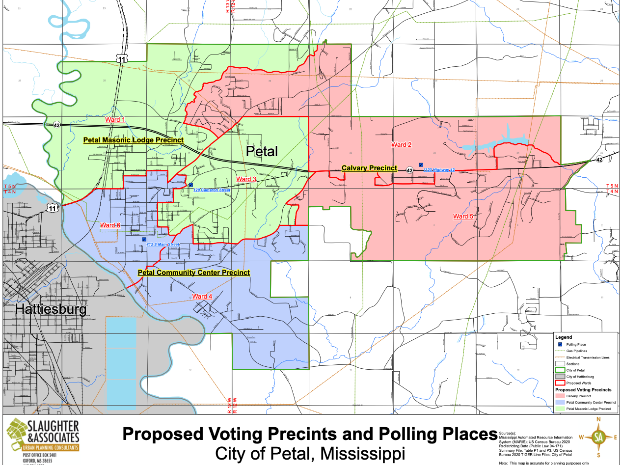 The new precinct lines, which were approved at a recent meeting of the Petal Board of Aldermen, will take place immediately and will affect only municipal elections, the next of which will happen in 2025. Residents of the city’s six wards will now split their votes between the same three precincts as usual, with the exceptions of some residents who will be required to cast their votes at a new polling place.