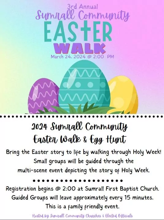 After two years of positive response from the Sumrall Community Easter Walk, officials from the Town of Sumrall are gearing up for what is hopefully an even bigger follow-up to that event, which includes a guided tour that brings small groups through a multi-scene event depicting the story of the Holy Week of Easter.