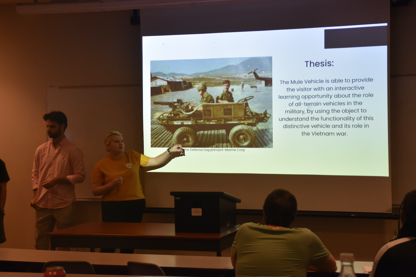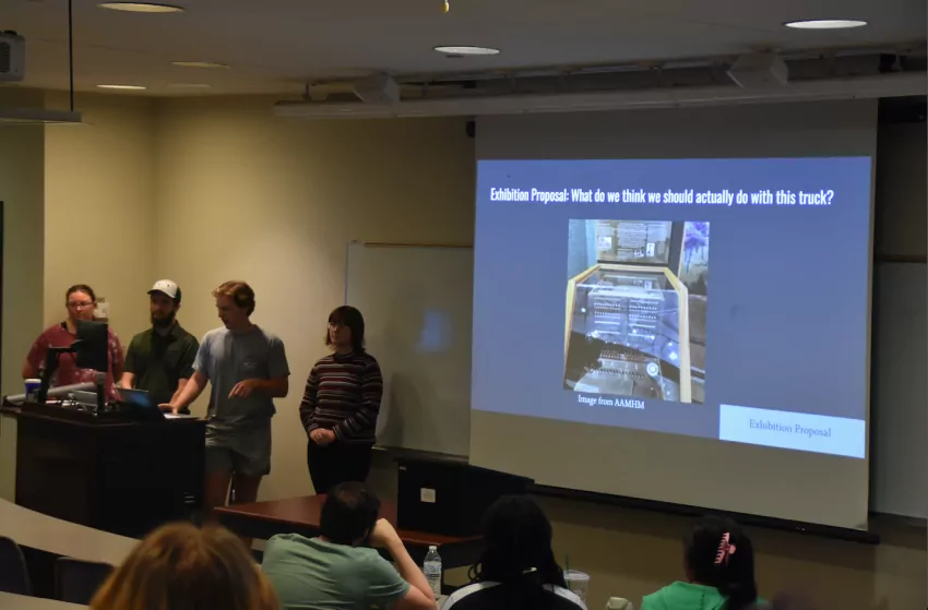 During the presentations, which took place October 5 in the Liberal Arts Building on the Southern Miss campus, each of the groups displayed sideshows of one vehicle for the museum, along with information on that piece and why the students chose that particular vehicle. The vehicles discussed, which range from World War II to the Vietnam War, included the M718 ambulance, the M-42 command truck, the DUKW amphibious truck and the M274 “Mule.”