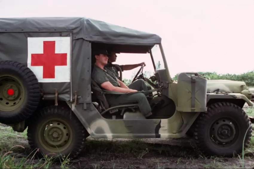 Stretcher racks were often installed to give the M718 more functionality in the field. Mostly known for its service in Vietnam, the trucks provided a rear sitting area for four personnel, along with the two front seats.