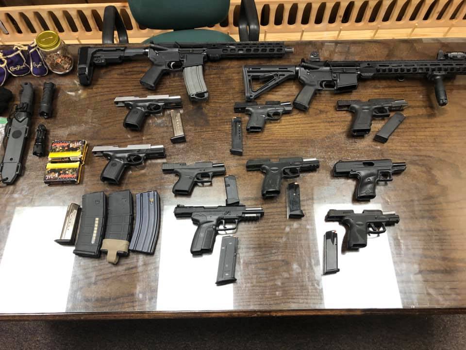Several weapons – which were stolen out of unlocked cars – were recovered during the arrests, including at least nine handguns, two rifles, ammunition and a knife.