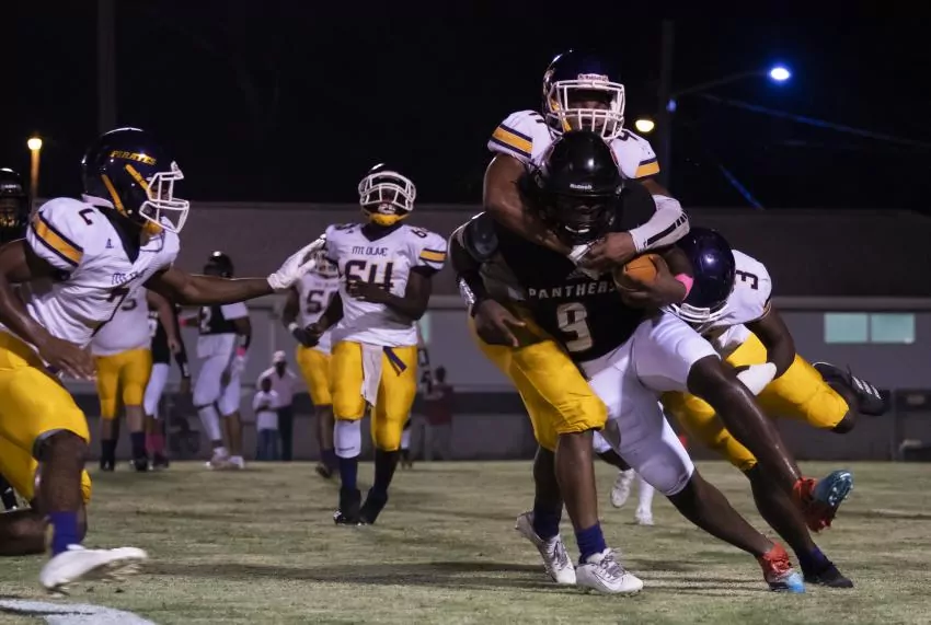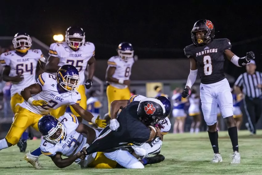 Taking over after a fourth-down stop near midfield, the Panthers got an 18-yard run by sophomore Kalyjah Willis to the Mount Olive 20-yard-line, then a 7-yard pickup by senior Shavante Toney got them as close as the 13.