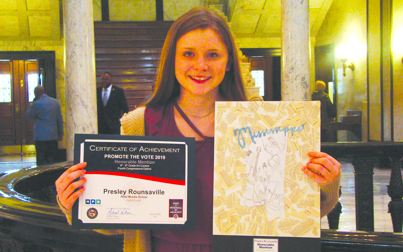 But thanks to Shanna Britt, her eighth-grade art teacher at Petal Middle School, that passion was rekindled once again in the classroom – and just in time, as Rounsaville recently earned Honorable Mention in Secretary of State Michael Watson’s “Promote the Vote” program.
