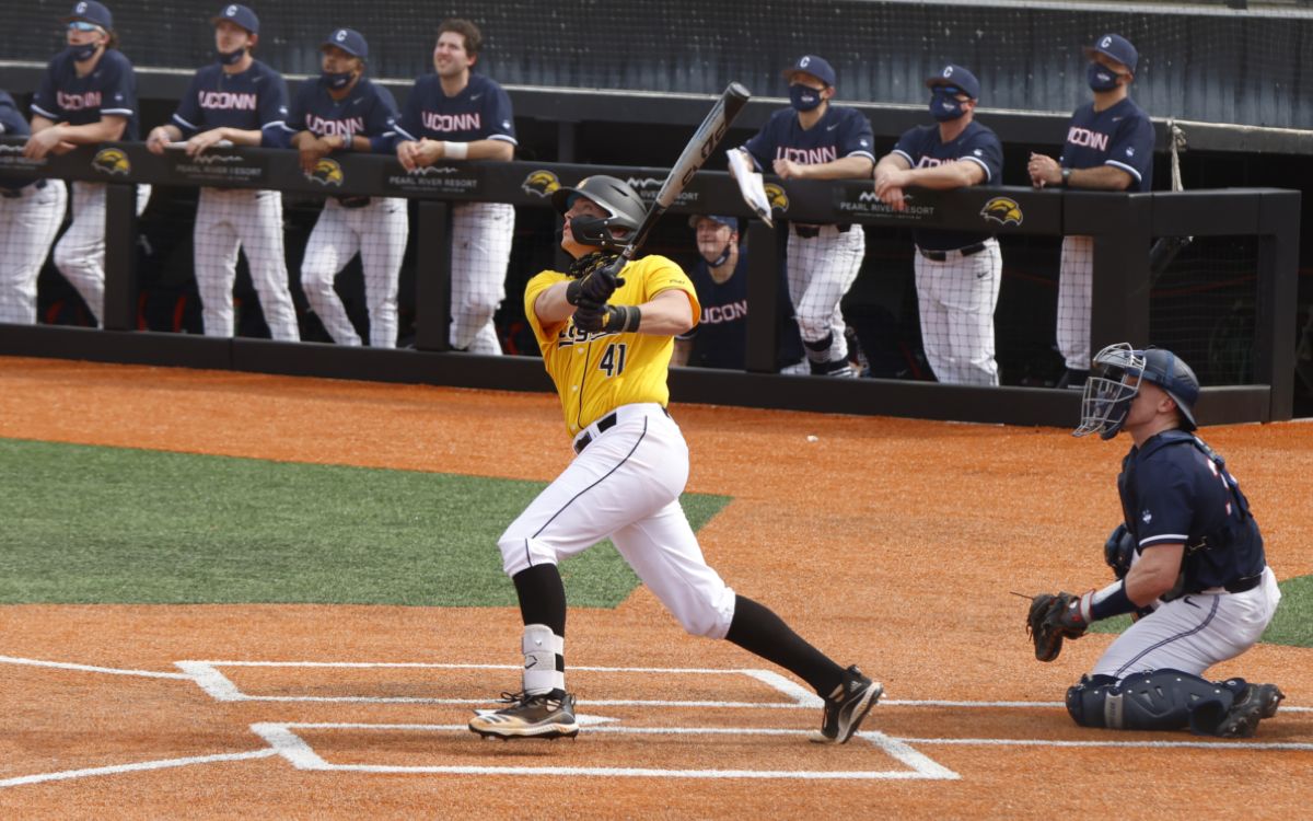 Southern Miss closer Garrett Ramsey did it again. For the second day in a row, Ramsey halted Connecticut’s late effort to clinch the series for the Golden Eagles with a 7-6 win.