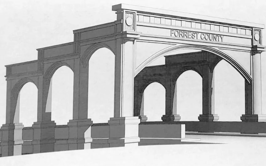 The current bridge, which sees approximately 10,000 vehicles per day, will remain open to traffic until the new bridge is finished. The design will feature archways at both ends with the words “Forrest County” on the front.