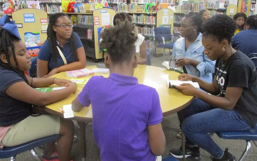 Midnight Without a Moon, which is the 2019 Mississippi Library Association-winning book, is a children's book that tells the story of challenges faced by African Americans in the 1950s. In addition to reading the book with the children, the USM students brought along vocabulary cards to share with students in two activity classes – music and library,