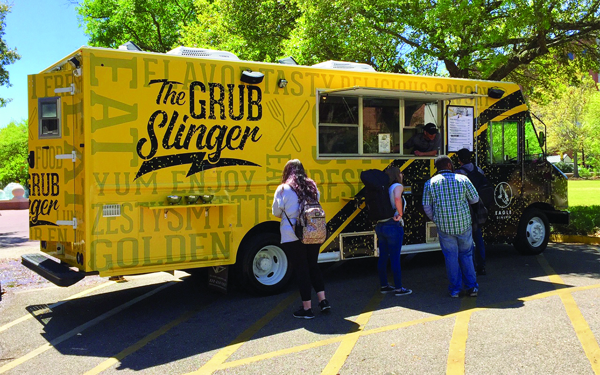Known as the “Grub Slinger,” the University’s unique food truck offers everything from hamburgers to tacos to paninis from 11 a.m. until 2 p.m. Monday through Friday.