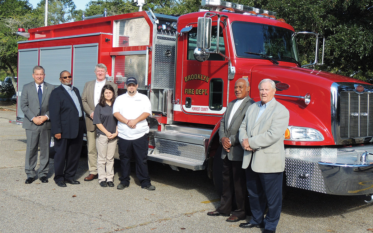 The Brooklyn Volunteer Fire Department and the Forrest County Board of Supervisors received an early treat during October when they took possession of a shiny new firetruck.