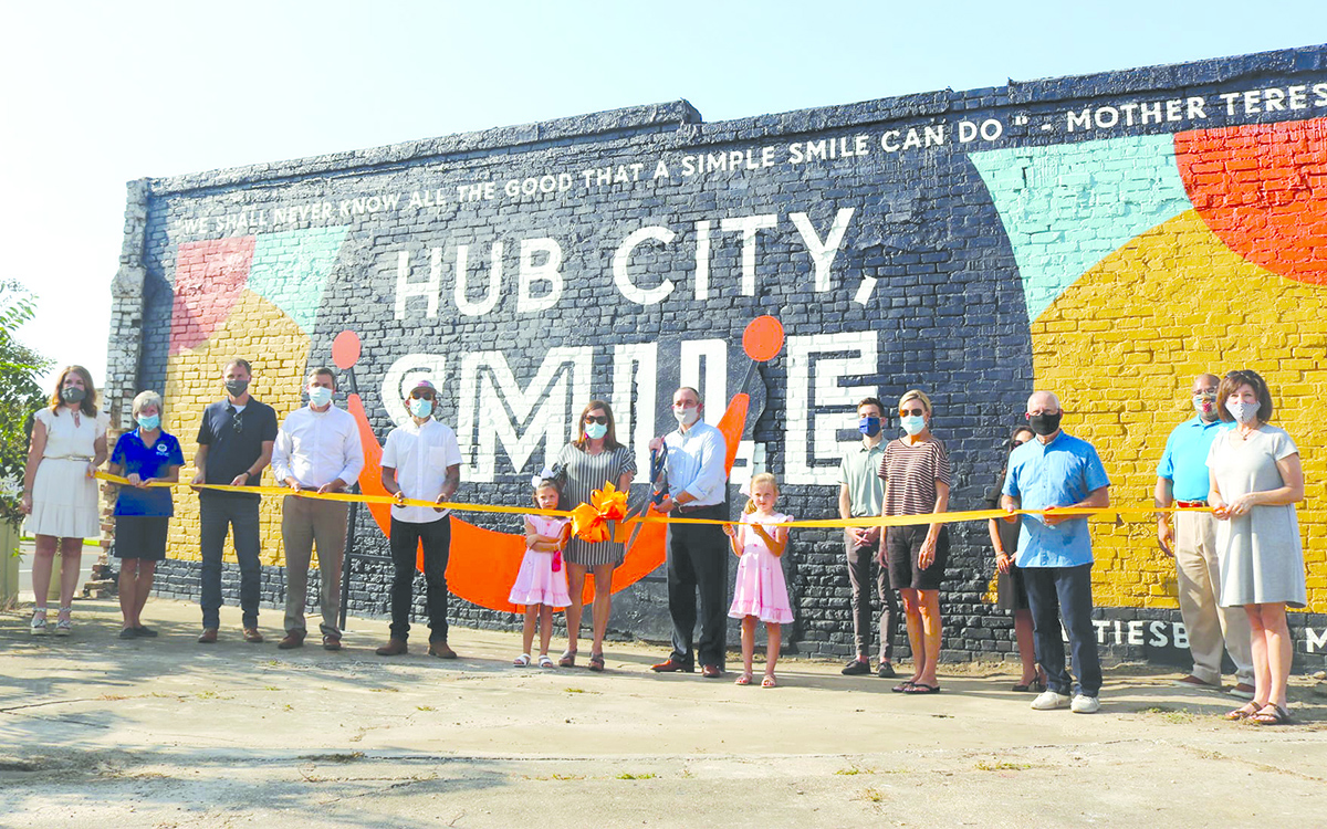 “Hub City, Smile” is the sixth mural to be completed in Hattiesburg this year and several others are currently in the planning stages.