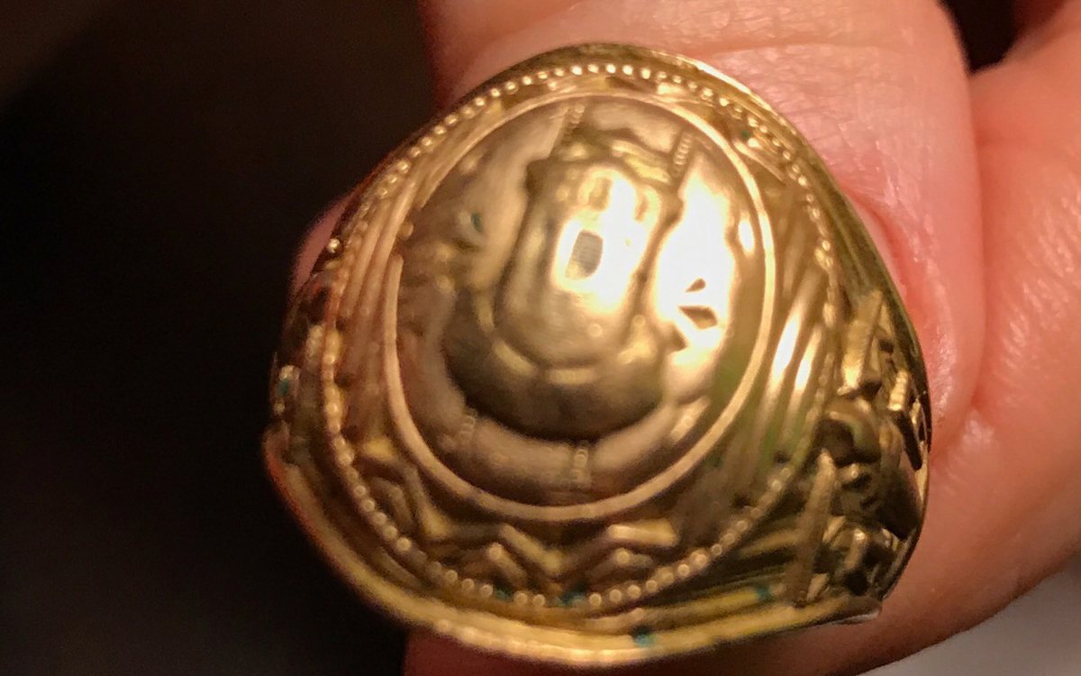 Knight said the ring is gold and features a crest on the top. The initials are engraved on the inside of the band.