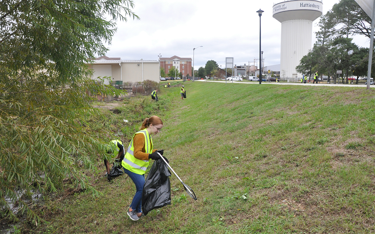 There were about 20 people in our group, tasked with picking up trash along 4th Street and the Longleaf Trace between the University of Southern Mississippi and Hattiesburg High School.
