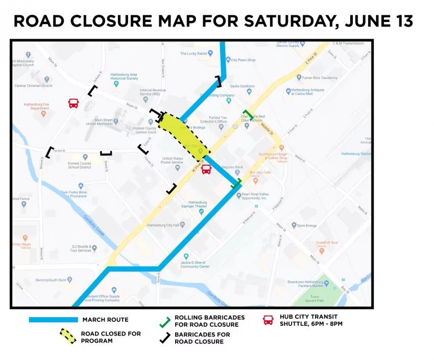- Hattiesburg Police Department will be providing traffic support for both march routes. All motorists should use caution along the routes.