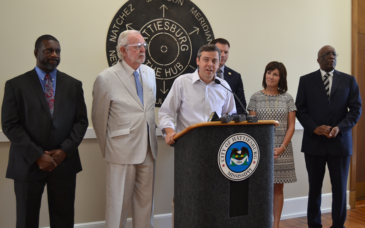 Reps. Missy McGee, Chris Johnson and Percy Watson – along with Sens. Juan Barnett and Billy Hudson – joined Barker at a news conference Friday at Hattiesburg City Hall to discuss the benefits of the Mississippi Modernization Act and the BP Settlement Bill that were passed at the session, which wrapped up Wednesday.