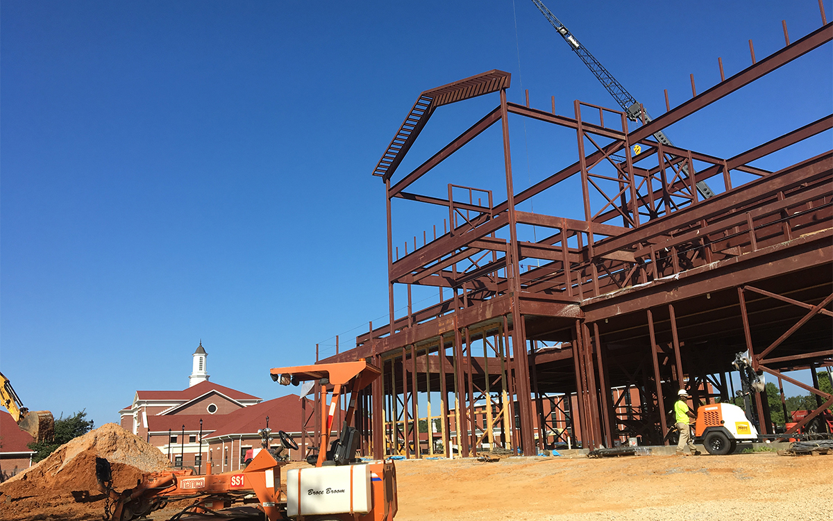 The steel skeleton of a new student center is taking shape at William Carey University’s Hattiesburg campus.
