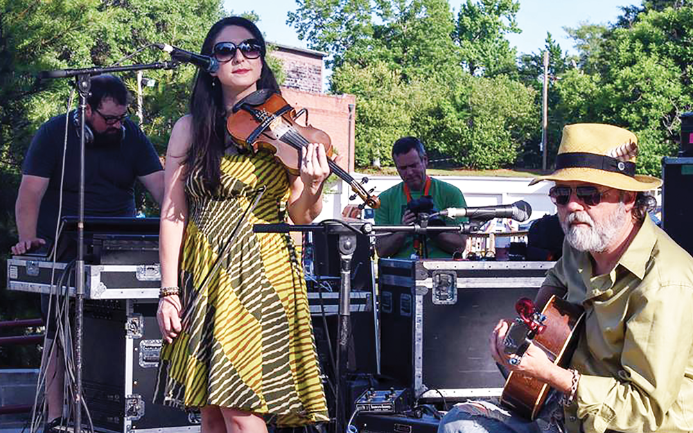 Kyle Baughman, owner of Hub City Stained Glass, a member of the Pine Belt Pickers, where he plays mandolin, and friend of Hudson, accompanied Hudson’s guitar strummming.