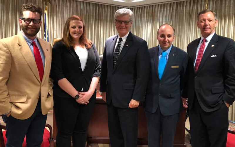 State President of the Mississippi Jaycees, Miranda Williams and Petal member, Zachary Smith took CDD Fitzgerald to tour the Capitol in Jackson and met with several state leaders who were past members of the Jaycees. The list included: Governor Phil Bryant, Workman Compensation Commissioner Mark Formby, Insurance Commissioner Mike Chaney, Secretary of State Delbert Hosemann, Representative Becky Currie, Speaker of the House Pro Tempore Greg Snowden and Representative Hank Zuber. All credit much of their success to the leadership skills they learned while a member of the Jaycees.