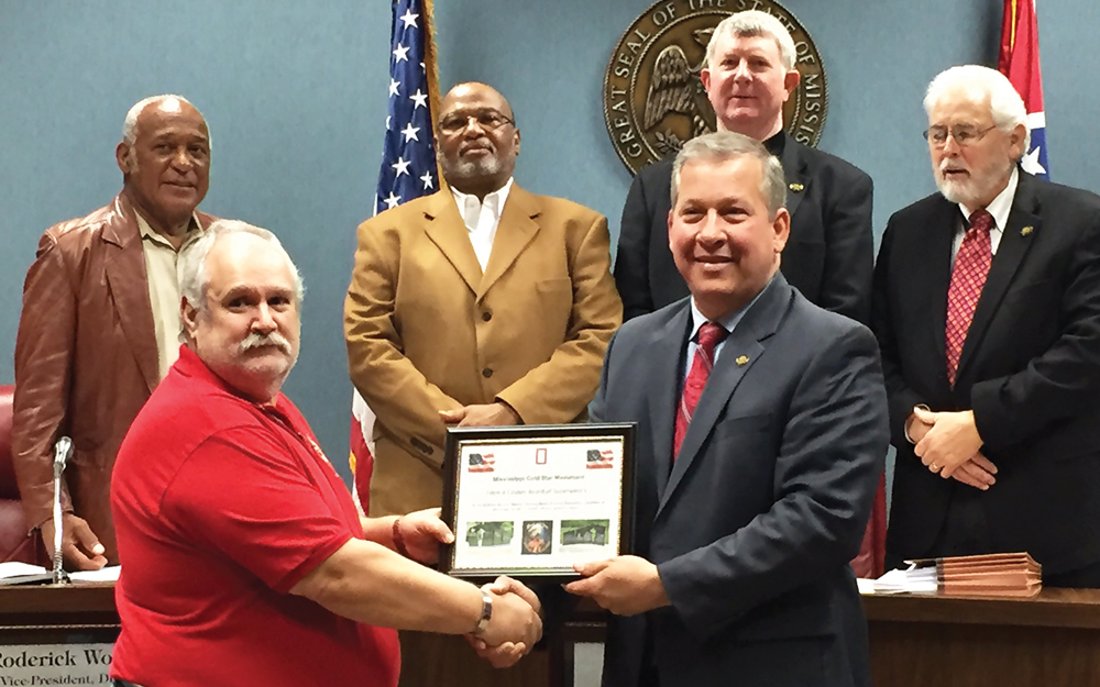 Leonard Scardino with the Gold Star Monument Committee was on hand to update the board on the monument which is to be built at Camp Shelby. He noted that the project, estimated to cost $50,000, is now 100 percent funded, the granite for the monument has been cut and the stenciling is in progress. The dedication is set for 10 a.m. May 16 at Camp Shelby.