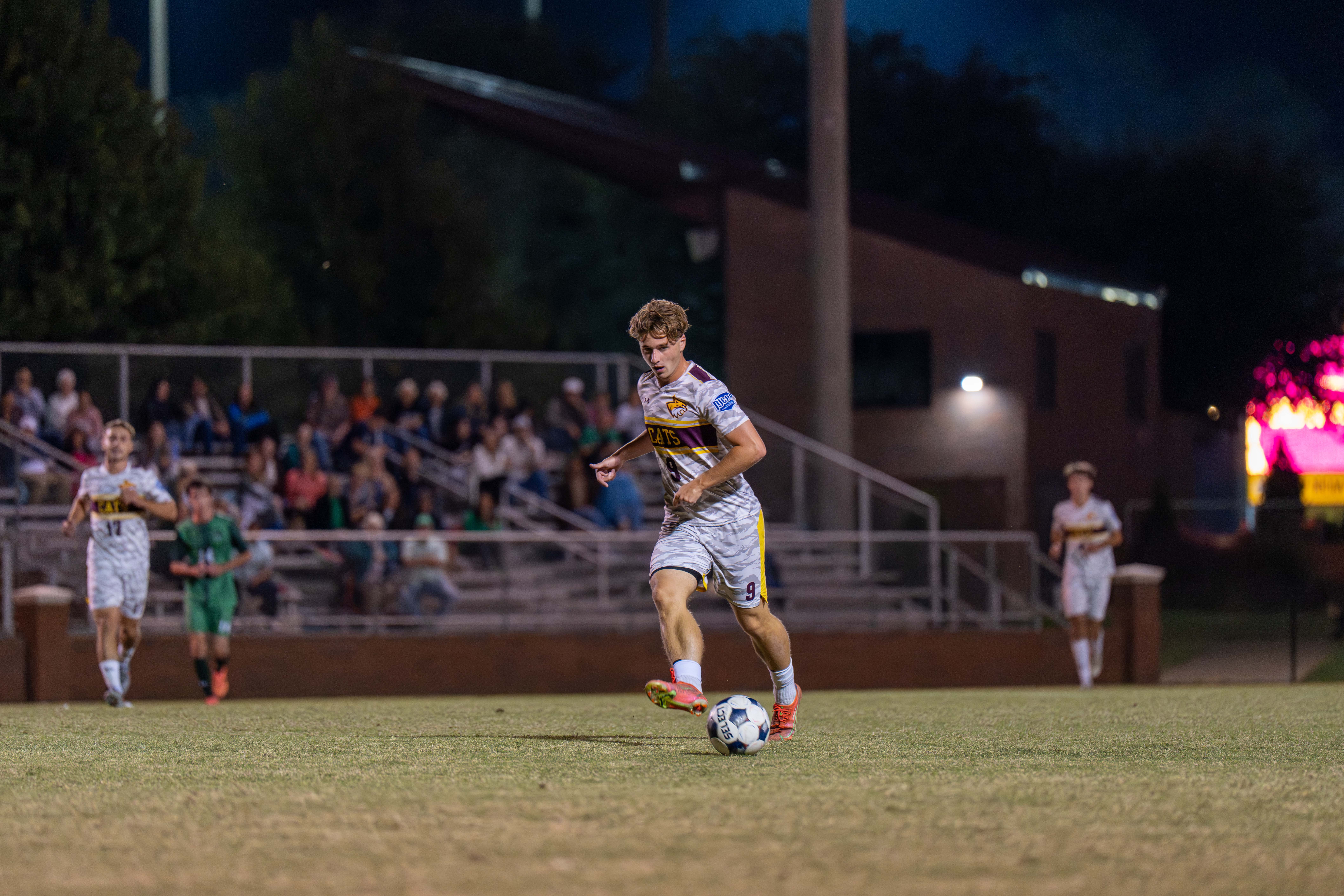 The Wildcats didn't slow down. Tycho van Haaren (Doetinchem, Netherlands) made it 4-1 in the 84th minute, finishing off a rebound from Viktor Hammer (Fredensborg, Denmark). Three minutes later, Drew Rumery (Ocean Springs) cleaned up a misplayed shot by the Meridian goalkeeper to push it to 5-1.