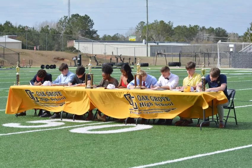 “It’s the biggest signing class we have ever had,” Oak Grove boys coach Jesse Lang said. “That just goes to some of the work they put in since they were freshmen.