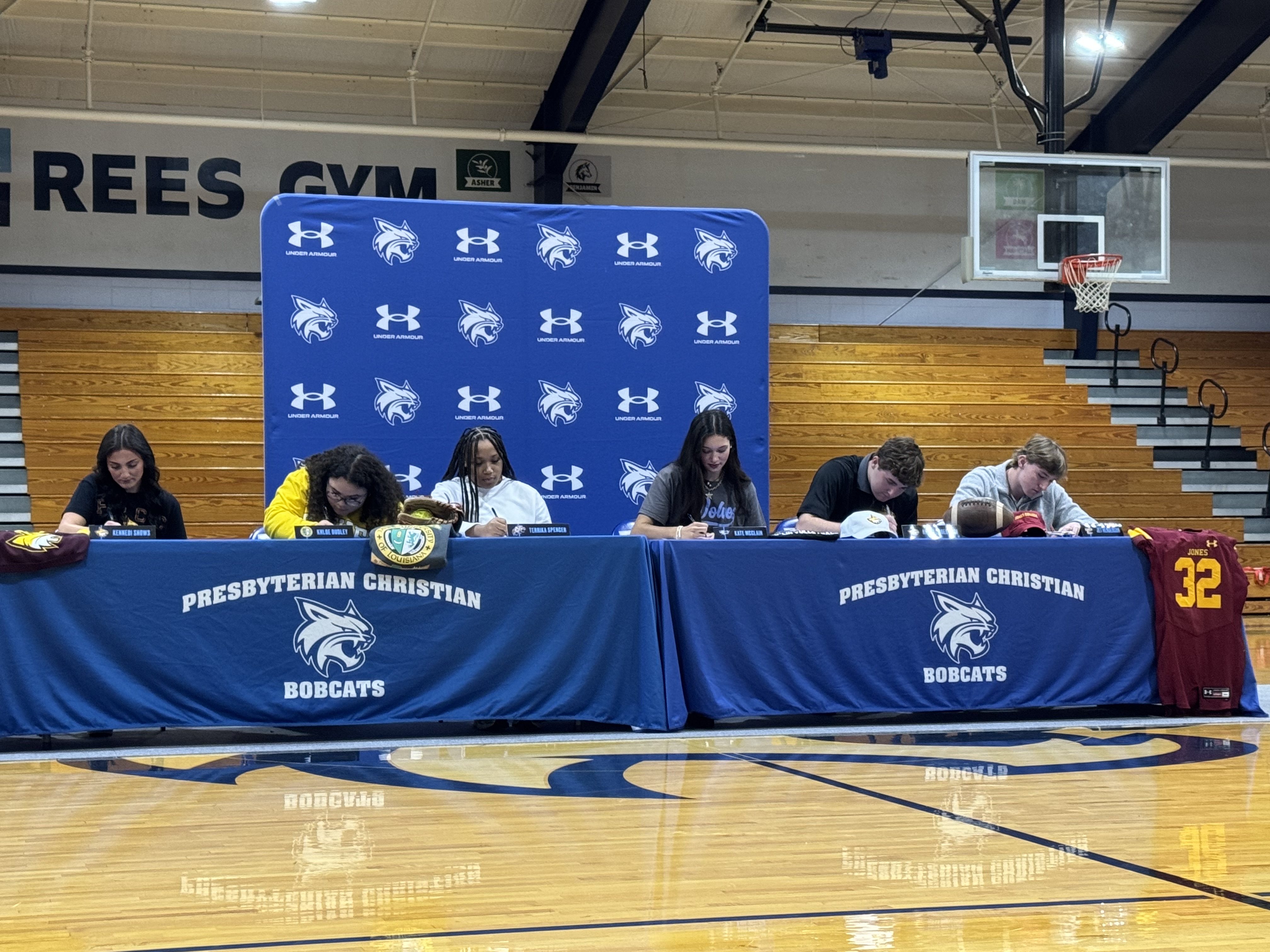 The six signees included football players Jet Henderson (Jones College) and Rhett Robertson (Pearl River Community College), volleyball standout Kate McClain (Copiah-Lincoln Community College), softball players Terrika Spencer (Coahoma Community College) and Khloe Dudley (Xavier University of Louisiana), and cheerleader Kennedi Shows (Pearl River Community College).