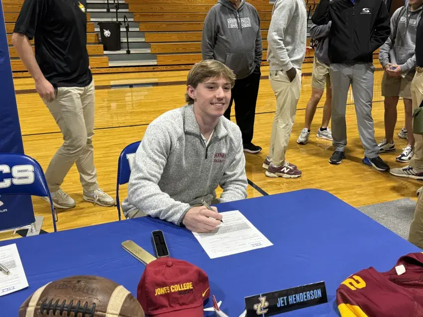 Henderson, who has all kinds of records at PCS, signed with Jones College after a 2025 season that put him on the first team Pine Belt Sports all-area team. He finished the season with 1,275 receiving yards and 17 touchdowns.