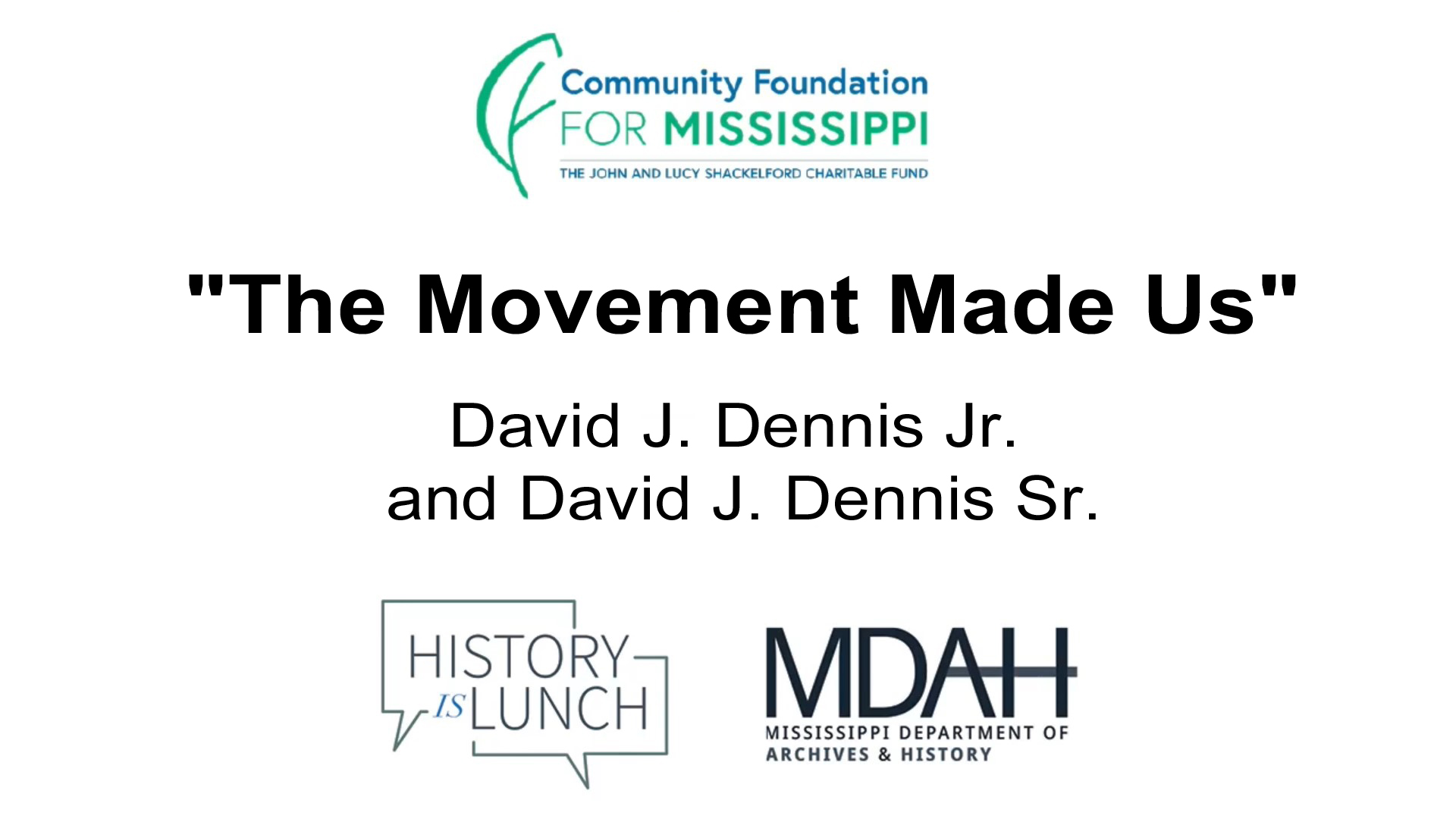 On May 18, 2022, David J. Dennis Jr. and David J. Dennis Sr. discussed their new book The Movement Made Us: A Father, a Son, and the Legacy of a Freedom Ride as part of the History Is Lunch series.
