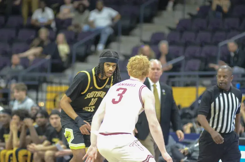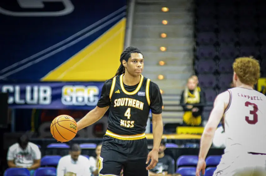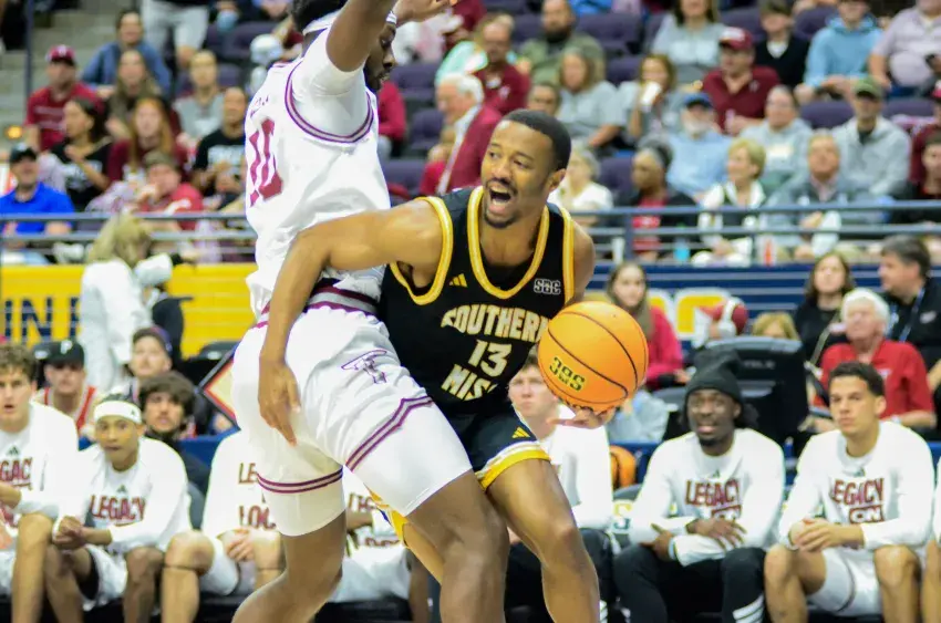 Southern Miss kept the game tight early, trailing just 25-22 after Isaac Taveras finished at the rim with seven minutes remaining before halftime. From there, the Trojans put together a 10-0 run over the next several minutes, stretching the lead to double digits and putting Southern Miss in catch-up mode.