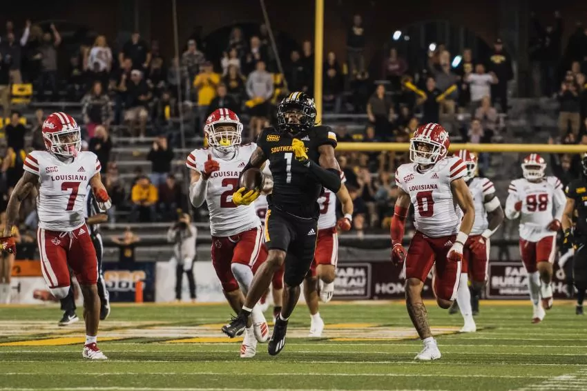 After a sack by USM killed Louisiana’s drive, running back Frank Gore Jr. hit Ty Mims for a 52-yard touchdown. Along with his touchdown pass, Gore led USM with 87 yards on 23 touches.