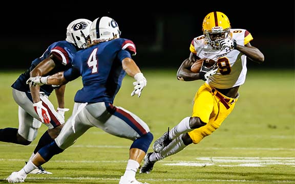 JCJC – Harry Ballard 3-55; Kendall Parham 3-48; Gabe Rogers 3-8; Jeriko Morris 2-16; Diondre Champaigne 2-10; Jonnas Spivey 1-8; T.J. Stephens 1-8; Barrett Barham 1-4.