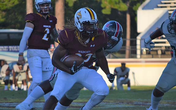 PRCC narrowed the margin late in the third quarter on Caleb Batie’s 12-yard scoring run. Johnson’s kick made it 27-14. Batie, a redshirt freshman from West Marion, provided a big spark for the Wildcats, carrying 10 times for 89 yards.