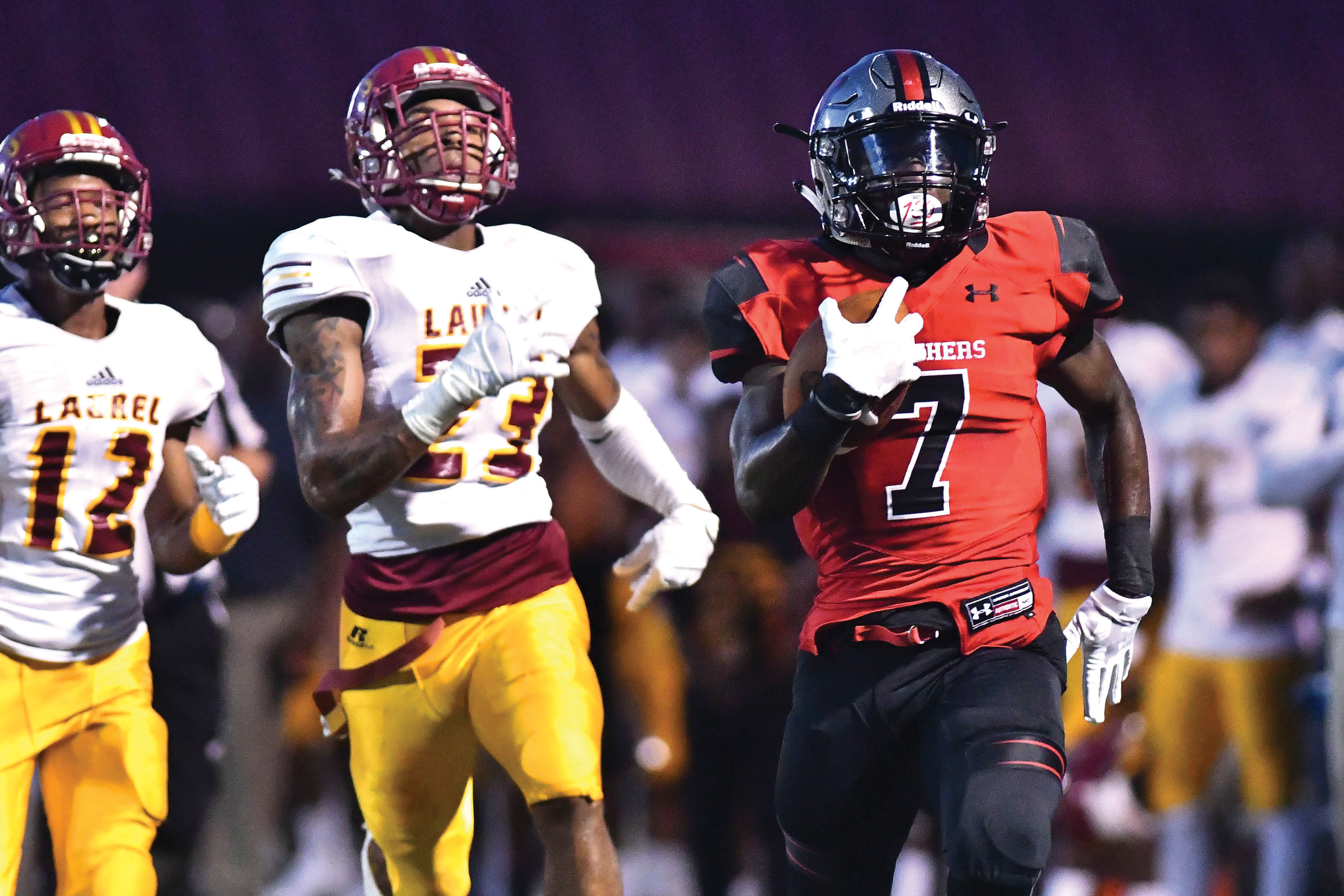 Handford busted onto the scene in that Laurel game, too. After totaling 162 yards and two touchdowns on 29 carries through the first three games of the season, he joined McGowan in the 200-yard club with 207 yards and three scores on 16 carries in the 27-0 win over Laurel.